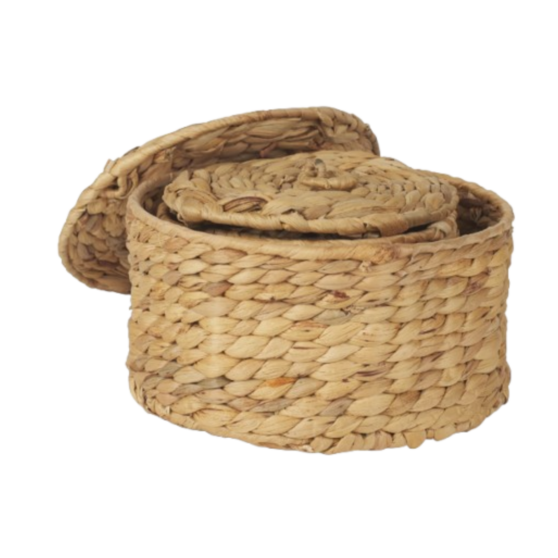 These Nesting Boxes (set of 3) are crafted of water hyacinth, a natural material to give warmth and texture.